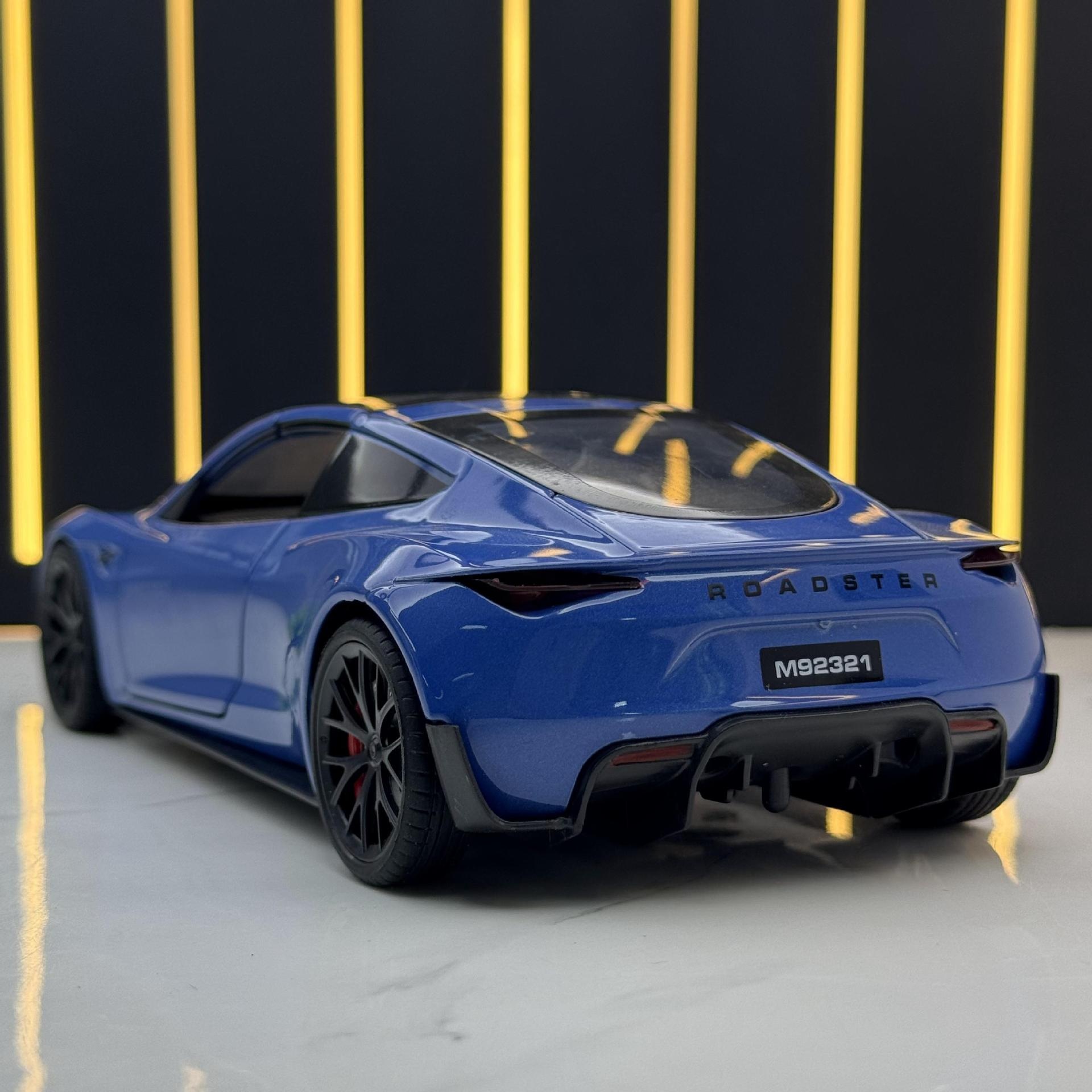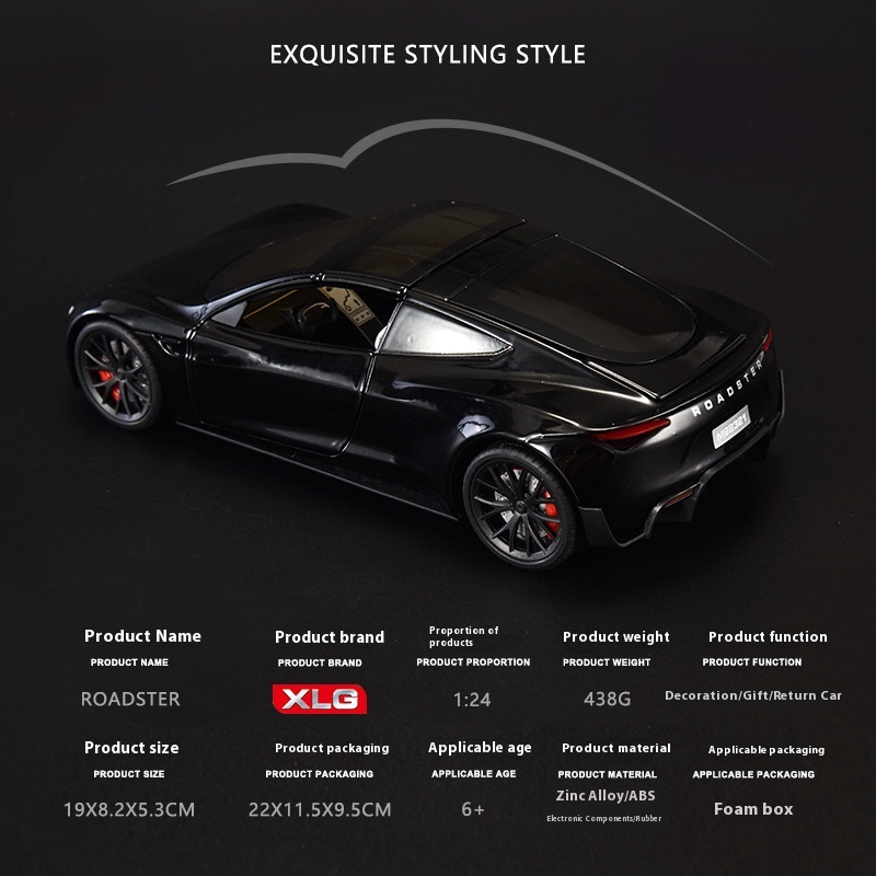 XLG Alloy Car Model 1:24 Tesla R Convertible Sports Car Sound And Light Pull Back Toy Car Music Model Ornaments Collection