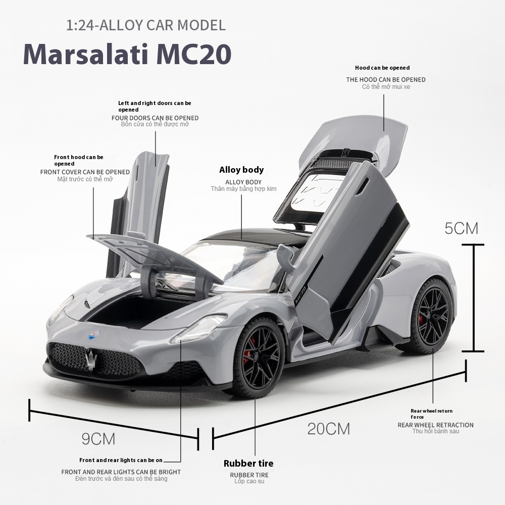 Jiaye Alloy 1:24 Serati MC20 Car Model Pull Back Boy Toy Sports Car Sound And Light Model Ornaments Collection