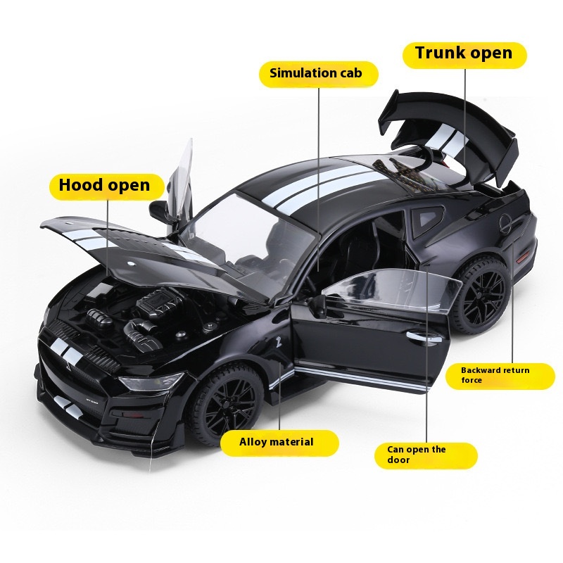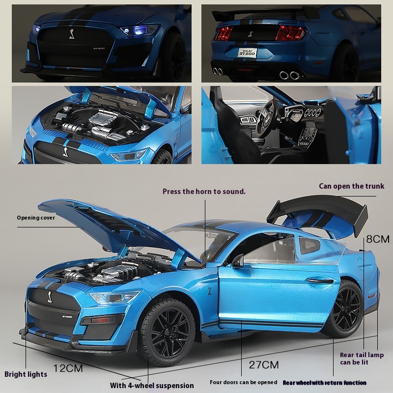 Shengrun Alloy Car Model 1:18 Ford Mustang GT500 Sports Car Sound And Light Pull Back Toy Car Music Model Ornaments