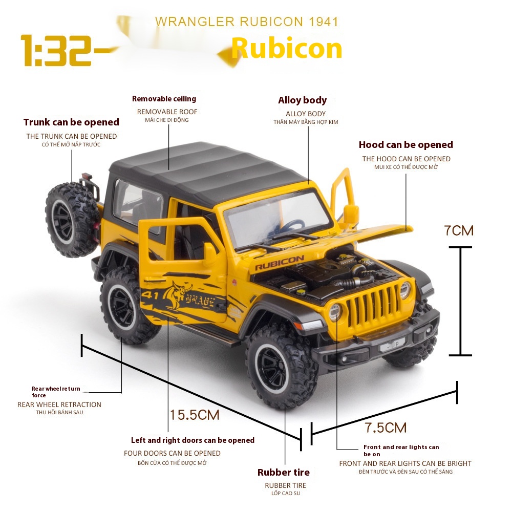 Jianyuan 1:32 Wrangler Rubicon Small Wheel Alloy Off-road Vehicle Model Sound And Light Back To The Male Toy Car Model Ornaments