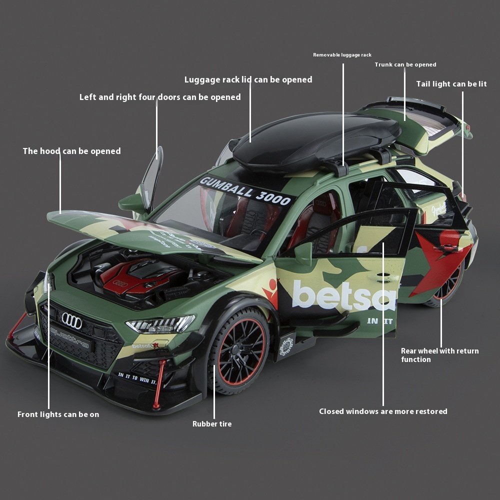 Weili Alloy Car Model 1:24 Audi RS6 Modified Version Sound And Light Pull Back Toy Car Music Model Ornaments Collection