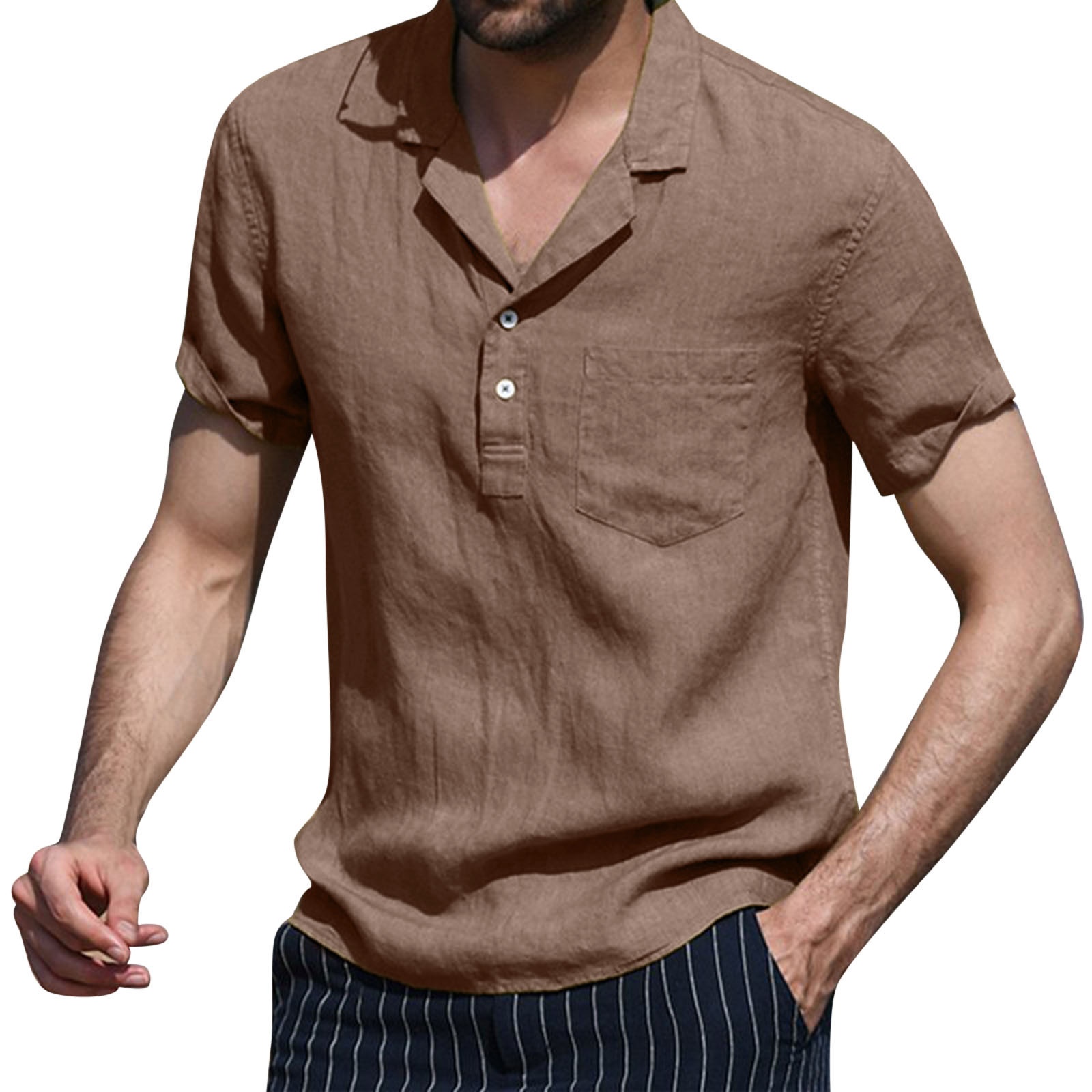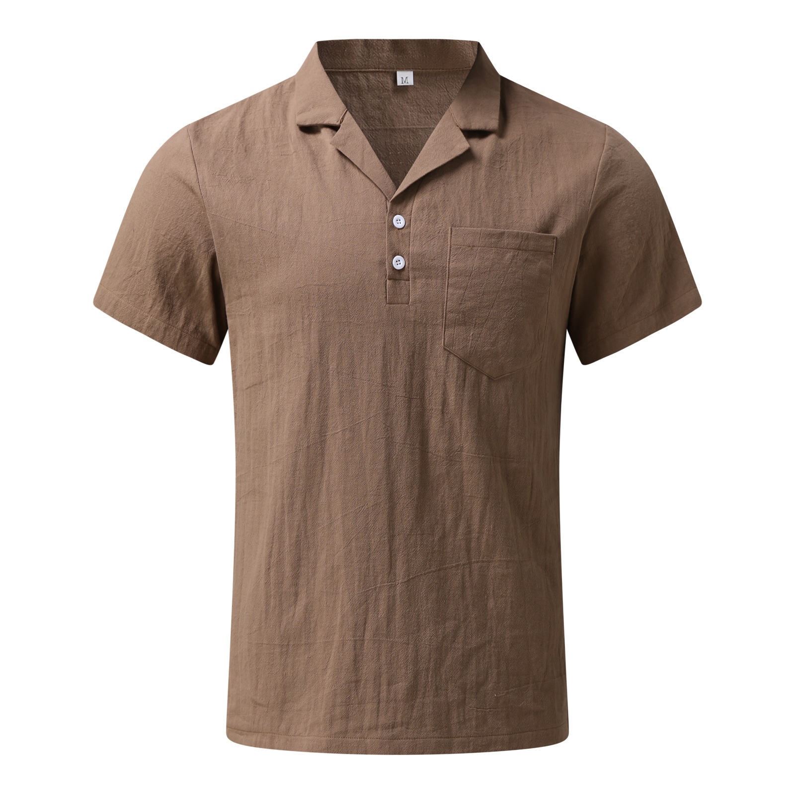Summer Men's Casual Linen Shirt Retro Chinese Style Stand Collar Slim Fit Cotton And Linen Short Sleeve Shirt